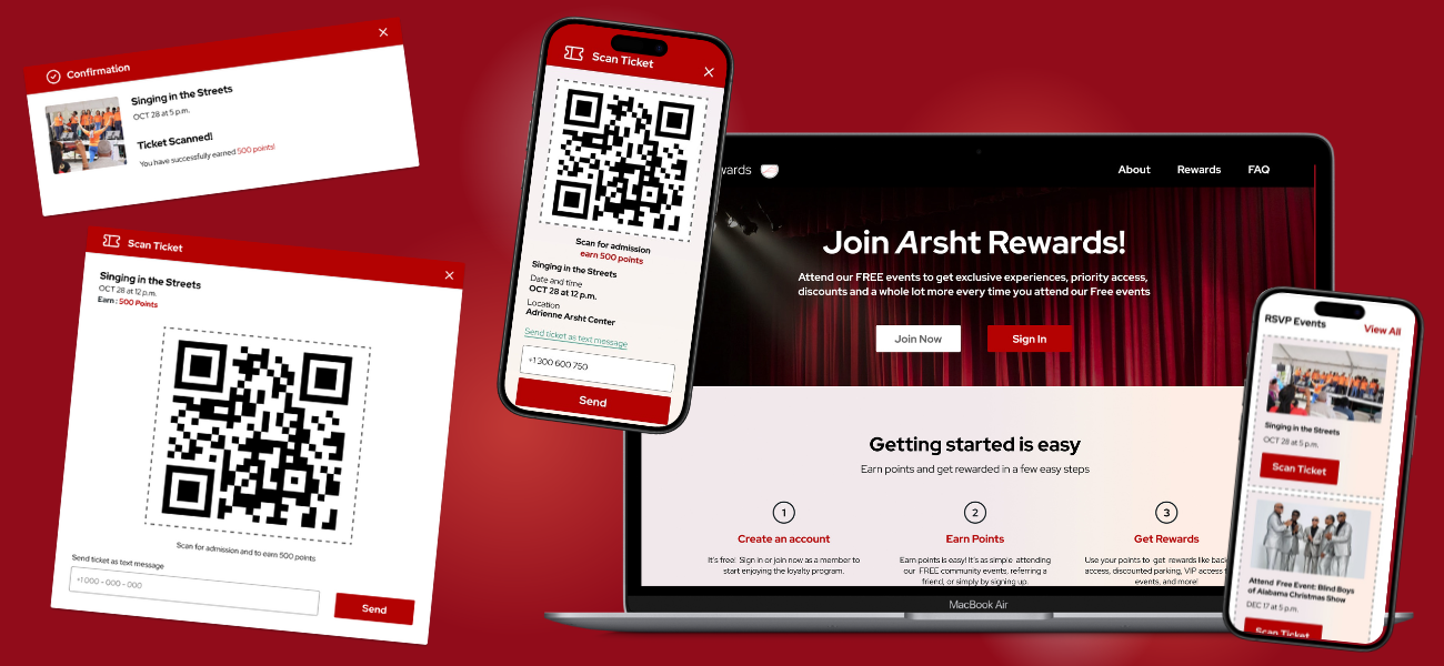 The journey ensures users can navigate to Arsht rewards from multiple different touch points. A user’s ability to join from the main Arsht center site, post event RSVP or attendance is intentionally easy as each flow was designed to keep interactions simple. Users create an account, attend events, earn points, and redeem rewards seamlessly.