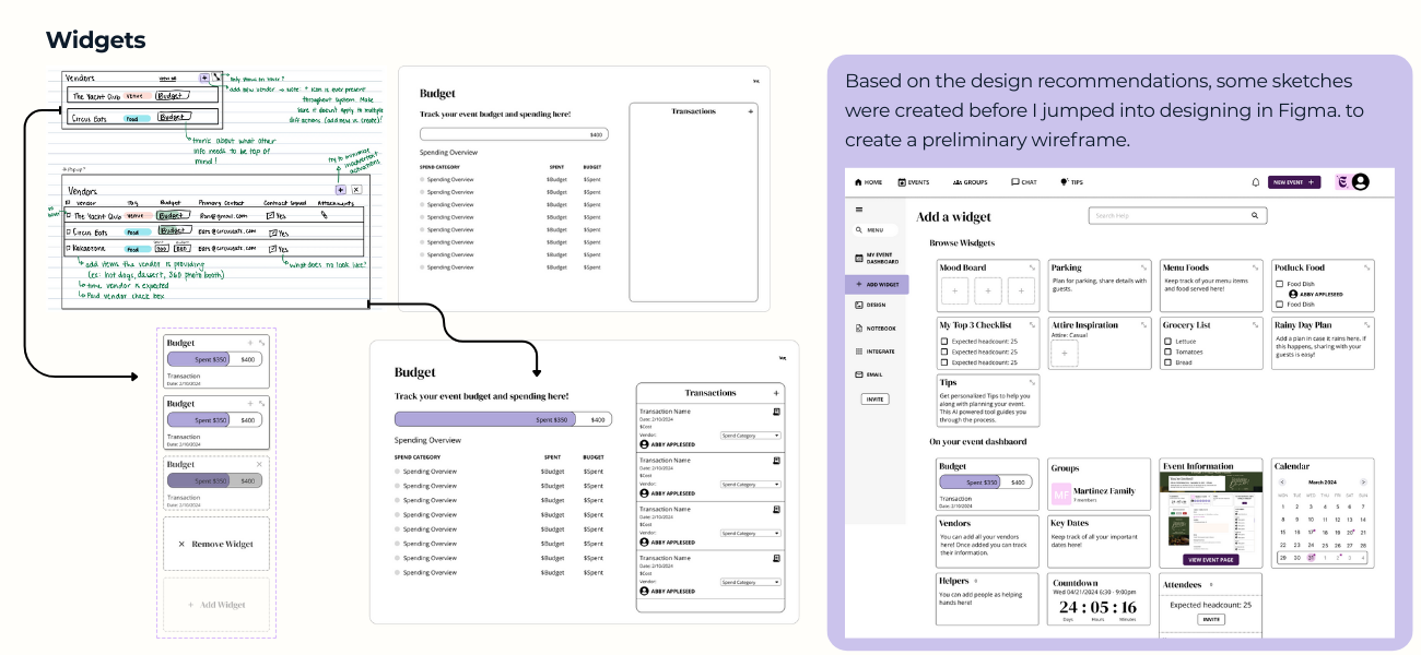 Modular System Design: Incorporating this style allows planners to add sections and customize their event dashboard view using widgets