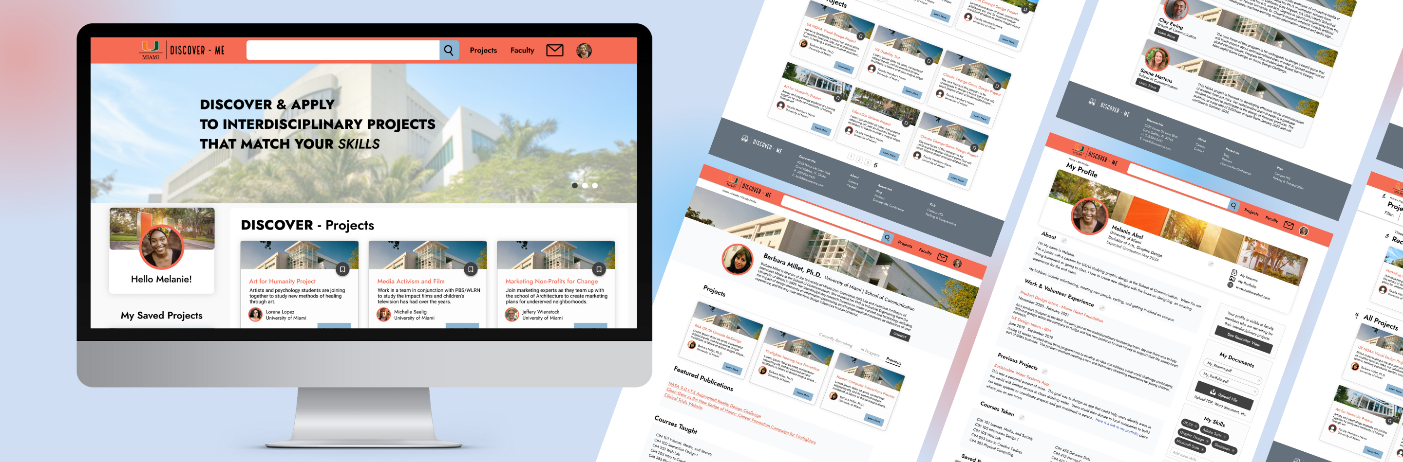 As interdisciplinary research accelerates in higher education, universities face a structural challenge. Collaboration is encouraged, but discovery and recruitment systems are fragmented. Discover-Me is a 0→1 web platform designed to streamline the pipeline from opportunity discovery → application → connection → collaboration. In higher education, interdisciplinary work is on the rise. Despite the multiple benefits to the university, faculty members, and students finding a project or the talent is difficult as barriers to entry often limit and the discoverability of new opportunities. Designed to revolutionize how students and faculty members connect and collaborate, Discover Me consolidates interdisciplinary project application information. Empowering the higher education community with a seamless platform that makes it effortless to search for peers, communicate effectively, and showcase profiles. This web application enhances an institution's productivity and innovation by making every connection count.