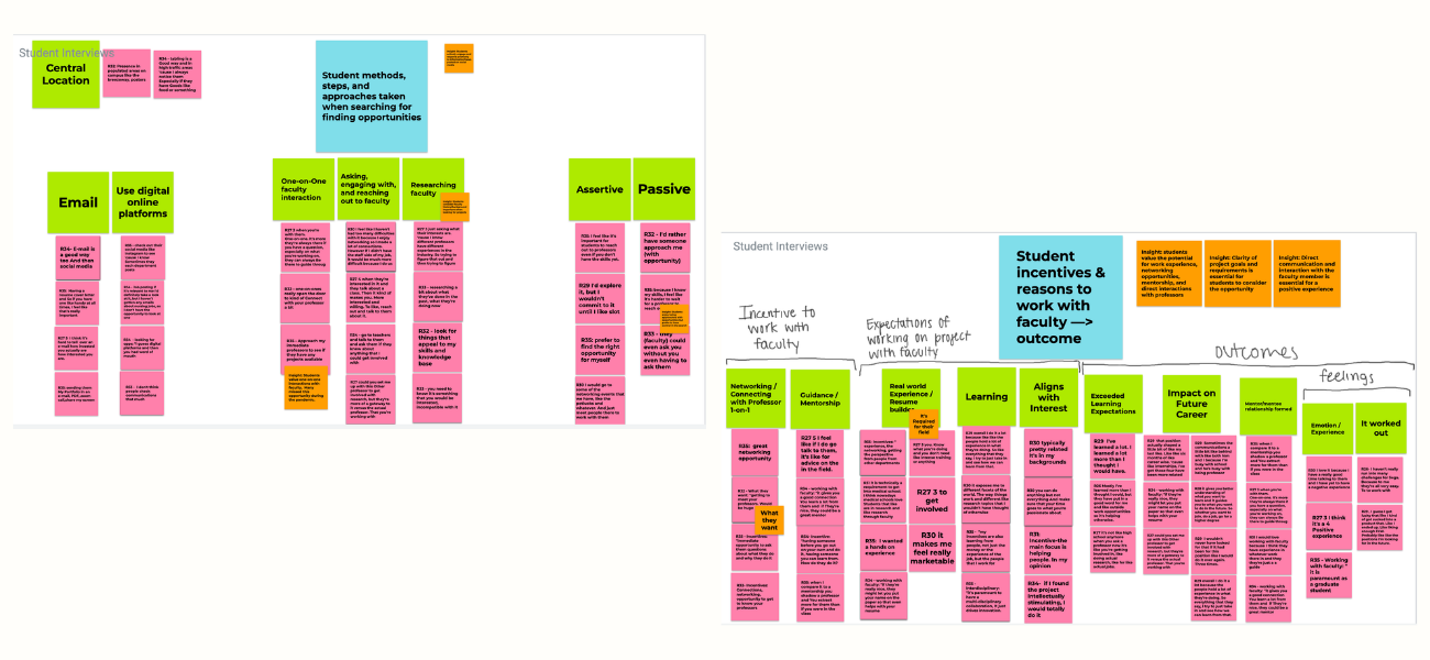 To define a design strategy our team took the additional insights gained to reframe the problem. Research uncovered that it is a challenge for faculty members, working on interdisciplinary projects, to find and recruit students with specific skill sets that differ from the faculty members current subject area of expertise. It is also a challenge for students to discover faculty that have experiential opportunities available.