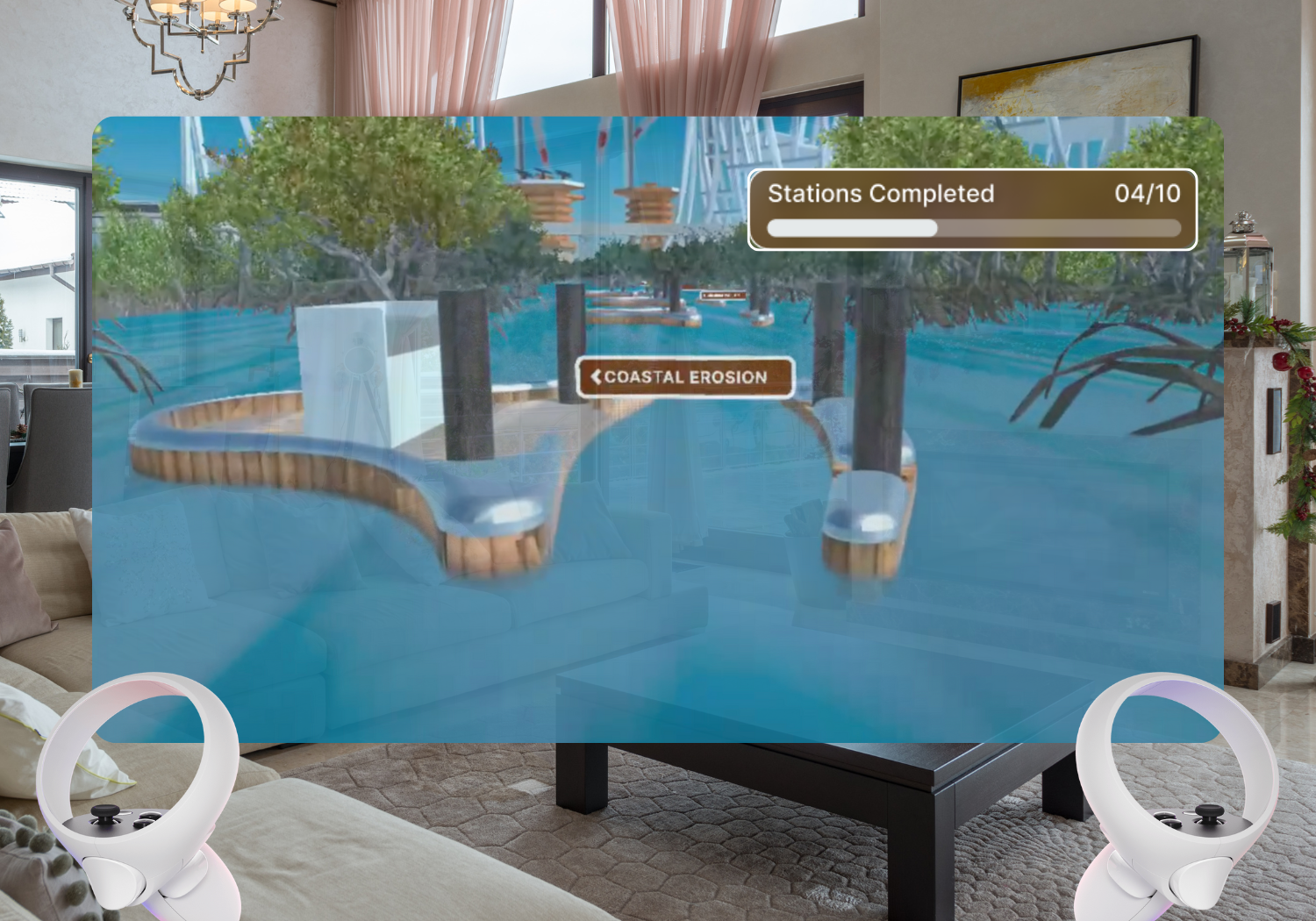 Mangrove City is an interactive VR game designed for middle school students that teaches them about the importance of mangrove forests and its ecosystem. The single player game experience allows students to paddle through a fictional canal and complete interactive mini games at the “Education Stations”.